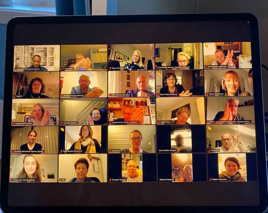 Høsten er her. Samfunnet åpner stadig mer opp. Mange aktiviteter starter opp på nytt i disse tider. Det er en stund siden vi var sammen digitalt, og det var også en ny oppstart. Endelig er vi skikkelig i gang! Over ser dere noen av de 58 deltakerne på den digitale Nettverkssamlingen 26. mai 2021. Her ble nettverket Fremtiden bor hos oss formelt etablert. Vedtekter er vedtatt og nytt styre er valgt. Men kanskje vel så viktig var det at vi kom i gang med den erfaringsutvekslingen dette nettverket hele tiden har skullet handle om.